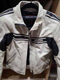 Ducati Leather Riding Jacket, Off-white With Black Stripes And Arm Emblem$160Rancho Palos Verdes, CA