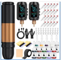 EMRICE Tattoo Gun Kit Wireless Tattoo Machine Pen Kit with 2Pcs 1600mAh Replaceable battery and 20 pcs Tattoo Cartridge Needles, 10 Ink Colors for Com$15New York, NY