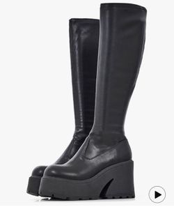Atsroel Knee High Boots Women Black Boots For Women Platform Chunky Heel Elastic Combat Boots Women Round Toe Fashion Motorcycle Punk Goth Boots$10New York, NY