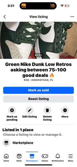 Green Nike Dunk Low Retros Size 8.5 Mens$60Homestead, FL