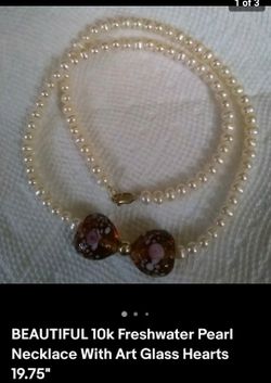 BEAUTIFUL 10k Freshwater Pearl Necklace With Art Glass Hearts $140Allentown, PA