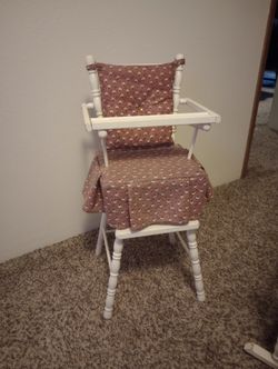 Vintage babydoll high chair and crib set. Real white painted wood, cute duck fabric 🦆$60Lake Stevens, WA