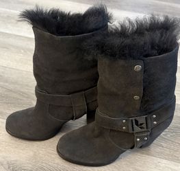 Koolaburra UGG Karlee Black Suede Boots Fur Lining Snap Close Heel Size 7$70Las Vegas, NV