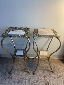 Pair Vintage Brass Marble Table For Sale $80Bedford, NH