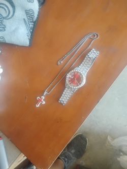 Silver Blinged Out Watch And Silver Chain W/Red Blinged Cross$25Mesa, AZ