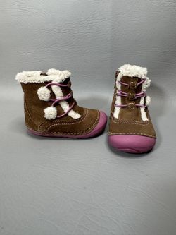 Stride Rite Soft Motion Lancia Pink Brown Suede Boots Faux Shearling Button 3-Mo$18Temple, TX