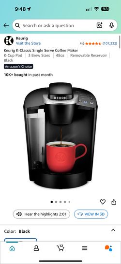 Keurig K-Classic Single Serve Coffee Maker$99Bakersfield, CA