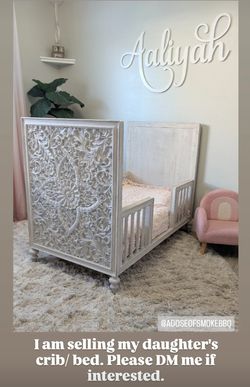 Zoe Carves Wood Panel Crib With Toddler Bed Kit$650Pumpkin Center, CA