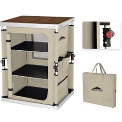 EAGLE PEAK Outdoor Folding Camping Table with Large 3-Tier Storage Organizer and Side Pockets, Easy Set Up Portable Aluminum Camping Kitchen, Beige$100Shelton, CT