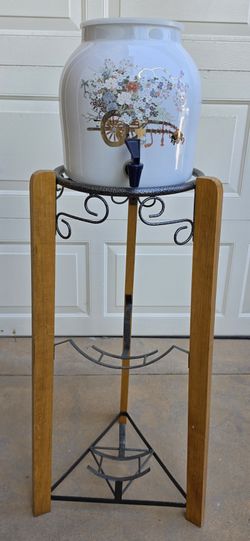 Ceramic Water Dispenser With Wood And Metal Stand$75Murrieta, CA