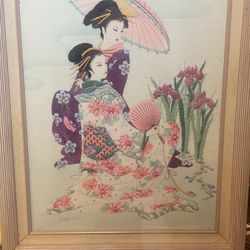 Vintage 1990 Graceful Geishas Crewel On Woven Canvas $140Hollywood, FL
