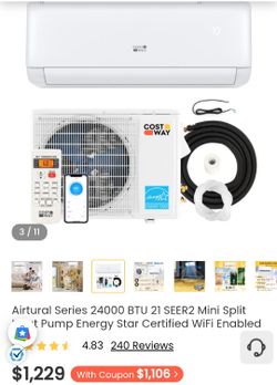 24000 BTU Mini Split Air Conditioner, Energy Star, with Remote, Compatible with Alexa, Googlehome, Heat Pump, 21 SEER2 Inverter, 24H Timer, for Rooms $650Hanford, CA