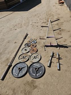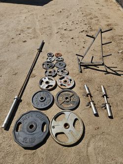 Olympic Size Weights, Bar, Storage Rack And Free Dumbbells Handles$200Nuevo, CA