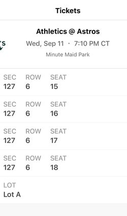 Astros Tickets And Parking Pass 7/11$100Katy, TX