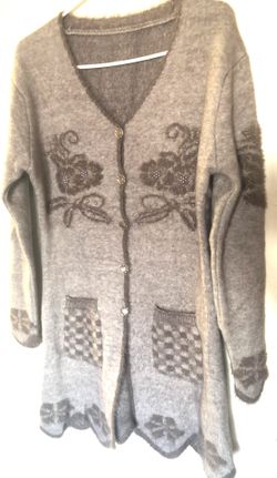 Natural Acrylic Wool Long Sweater/Beaded Sweater/Vintage WOOLRICH Sea Salt Snowflakes Embroidery Wool Frog Sweater stretchable sweater$100New Square, NY