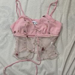 Pink Printed Mesh Crop Top with Adjustable Strings, Princess Polly$9San Jose, CA