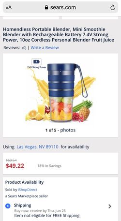 Homendless Portable Blender, Mini Smoothie Blender with Rechargeable Battery 7.4V Strong Power, 10oz Cordless Personal Blender Fruit Juice$30Las Vegas, NV