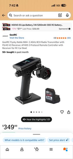 Brand New Flysky Noble NB4+ 2.4GHz 8CH Radio Transmitter with FGr4S V2 Receiver, AFHDS 3 Protocol Remote Controller with Receiver for RC Car Boat$276Diamond Bar, CA