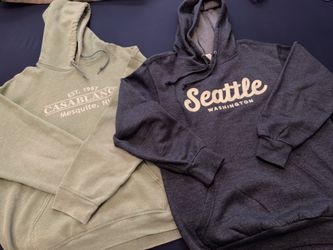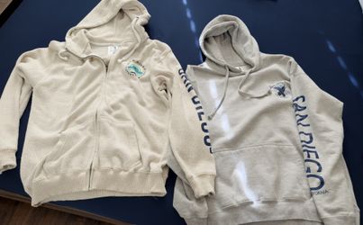 Full-zip hoodie and Pullover hoodie with "San Diego, CA" text on the sleeve and graphic print$30Las Vegas, NV