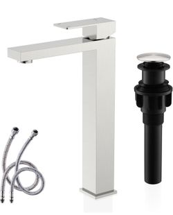 Brushed Nickel Vessel Sink Facuet Single Handle Tall Bathroom Sink Faucet Vanity Bathroom Faucet Basin Mixer Tap with Water Supply Hose and Pop Up Sin$30Hialeah, FL