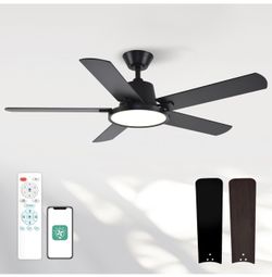 Ceiling Fans with Lights, 52 inch Low Profile Ceiling Fan with RGB Backlight, Flush Mount Ceiling Fan with Remote and App Control, White Bedroom Fan, $70Hialeah, FL