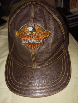 Rare Big EAGLE VTG Harley Davidson Embroidered brown Leather Strapback Cap