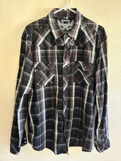 Machine Clothing Men’s Shirt Size XXL Long Sleeves Plaid Peral Snaps $8Irwindale, CA