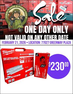 ONE DAY ONLY: Milwaukee M18 FUEL Compact Impact Wrench & 56-pc. Socket Set$400Houston, TX
