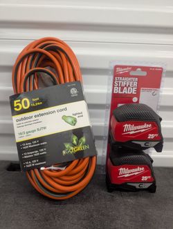 Milwaukee 25ft Tape Measure 2-Pack & 50ft Outdoor Extension Cord - NEW$40Houston, TX