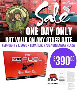 ONE DAY ONLY: Milwaukee M18 FUEL 4-1/2 in. to 6 in. Braking Grinder Kit$390Houston, TX
