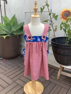 Heather Sue Sews LA Dodgers Red Gingham Dress Kids Size Age 4-5 NEW$45Ventura, CA