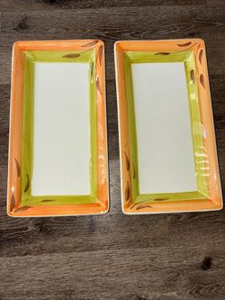 Set Of 2 Ceramica Serving Plates White Green Orange 14.25x7.75in$15Ventura, CA