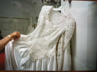 White Lace And Sequined Wedding Gown With 20 Foot Long Train$125St. Augustine, FL