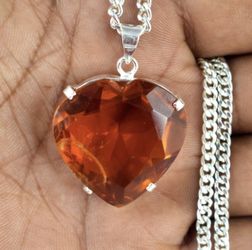 NEW CERTIFIED Genuine NATURAL 57CT Brazilian Citrine Heart 925 Sterling Silver Pendant Necklace $189New Port Richey, FL