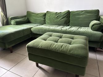 Green Velvet Article Couch And Ottoman $200Miami, FL