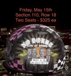 No Doubt - Sphere - 5/15/26, 2 Tix, Row 18, Sec 110$325Anaheim, CA
