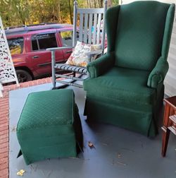 Vintage Chippendale Winged Back Emerald Green and Ottoman$150Asheboro, NC