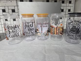 BOOK LOVERS -Set of 5 - 16 ounce plastic tumbler with straw. Each $15 or buy the set$15Alta Loma, CA
