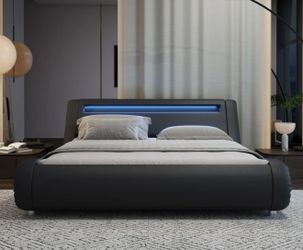 No Squeaking, Modern Upholstered Queen Bed Frame w/ LED Headboard$250Irvine, CA