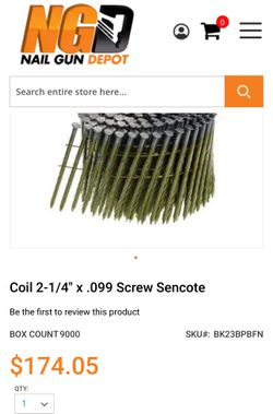 Coil 2-1/4" x .099 Screw ClavĂł en rollo BOX COUNT 9000$100Sacramento, CA