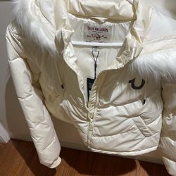 True Religion Chamarra Mediana Color Winter White Faux Fur Hooded $130Sacramento, CA