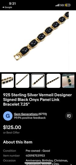 925 Silver Gold Plated Bracelet With Black Onyx Pieces$80Cty Of Cmmrce, CA