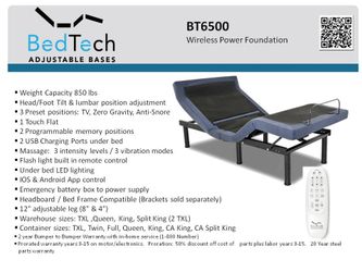 BedTech BT6500 Power Foundation w Wireless Remote$1,199Jonesboro, GA