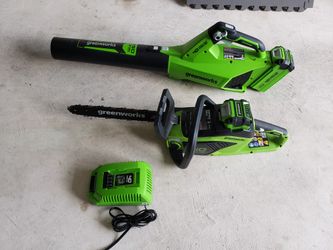 Greenworks 14" Chainsaw + 500CFM Blower + 2x 40V Batteries & Charger - Excellent Condition ..$200Houston, TX