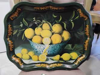 Authentic Ian Logan London UK Extra Large Metal Serving Tray painted by Sara Hay Bowl of Lemon $250Stafford, TX
