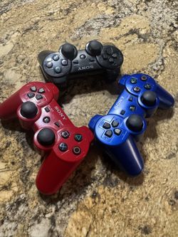 SoldThree Sony PS3 DualShock 3 Wireless Controller – Black Red Blue - OEM Original Tested$75Phoenix, AZ