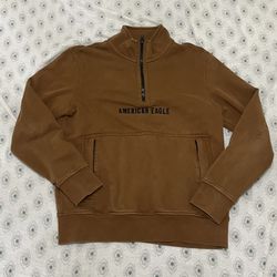 American Eagle 1/4 Zip Sweatshirt Brown Pullover Mens S Cotton Kangaroo Pocket $22Atascosa, TX