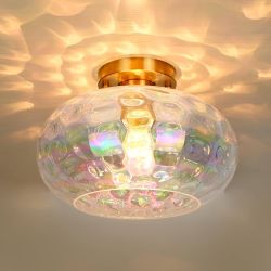 Brass Gold Semi Flush Mount Ceiling Fixture 11" Hammered Glass Shade $45La Mirada, CA