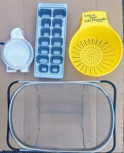Ice Cube Tray, 2 Food Strainers, Microwave Egg Cooker, Sell all 4 for $15$15Saint Charles, MO