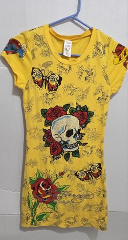 Women's Ed Hardy Yellow Mini Dress Skull Design Size XL Runs Small $28Paramount, CA